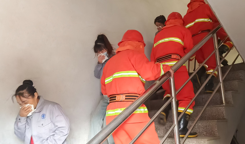 As the simulated fire alarm sounded, employees at all positions responded promptly. Under the guidance of on-site commanders, they bent down, covered their mouths and noses, and evacuated quickly and orderly along predetermined routes to the designated safe assembly point.