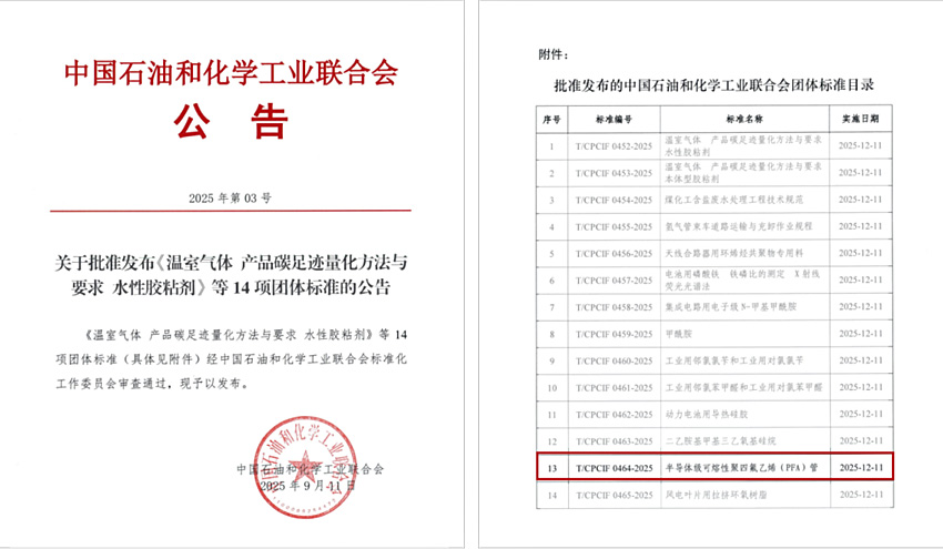 (T/CPCIF 0464-2025), liderado por Baoshili y coparticipado por más de 20 empresas de alta tecnología especializadas en fluoropolímeros ultrapuros, ha sido revisado y aprobado por el Comité de Trabajo de Normalización de la Federación de la Industria Química y del Petróleo de China, y se implementará formalmente el 11 de diciembre de 2025.